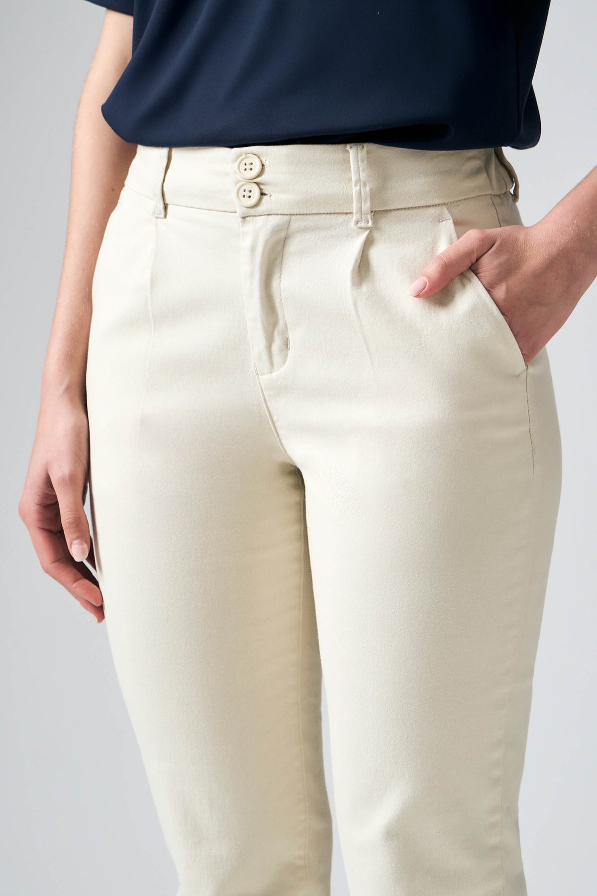 - Design Details: 2 Pcs. Front Button Closure, Front Pleat Detail, High Waist, Gartered Back Waistband, Slanted Side Pockets, Back Faux Welt Pocket W/ Darts