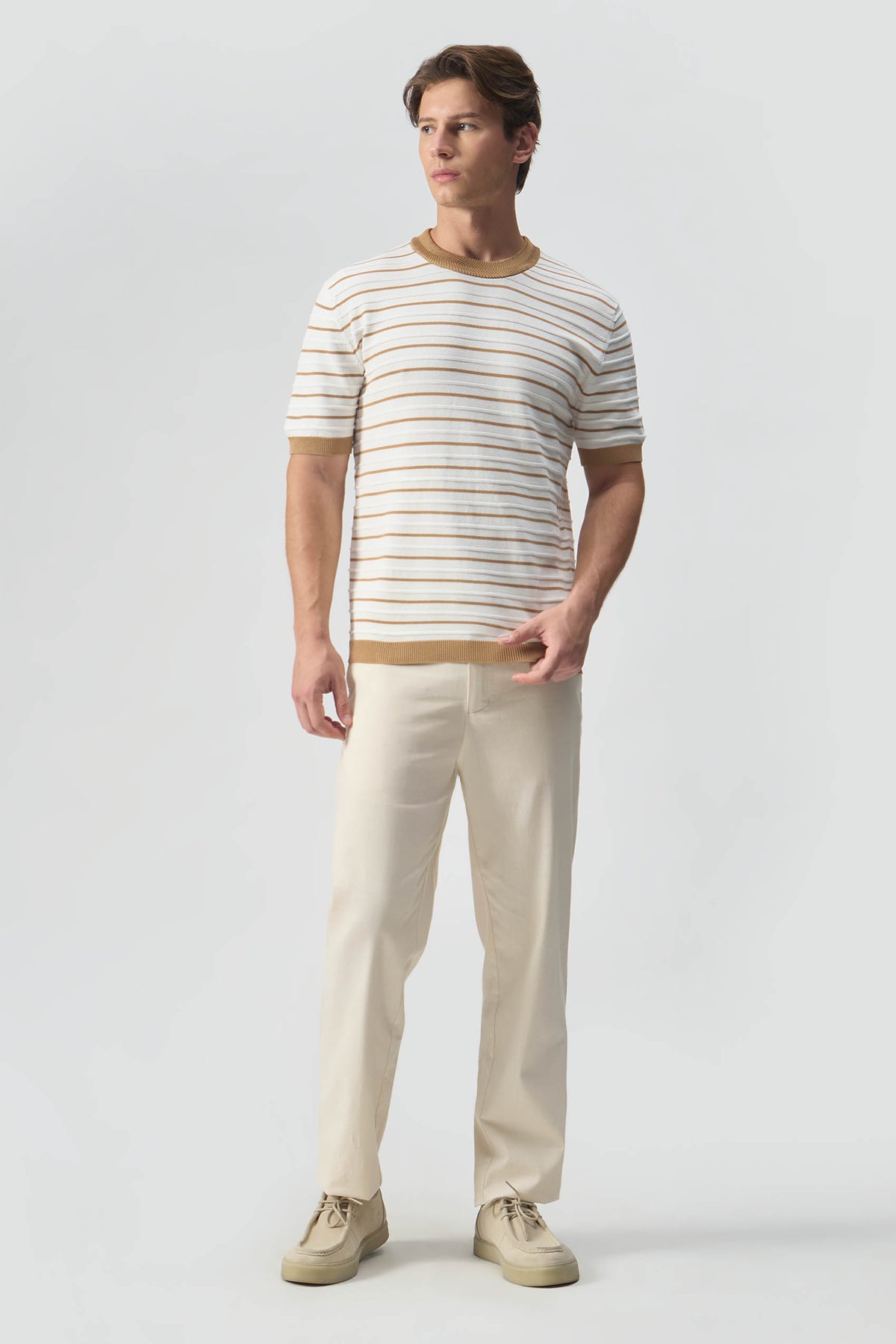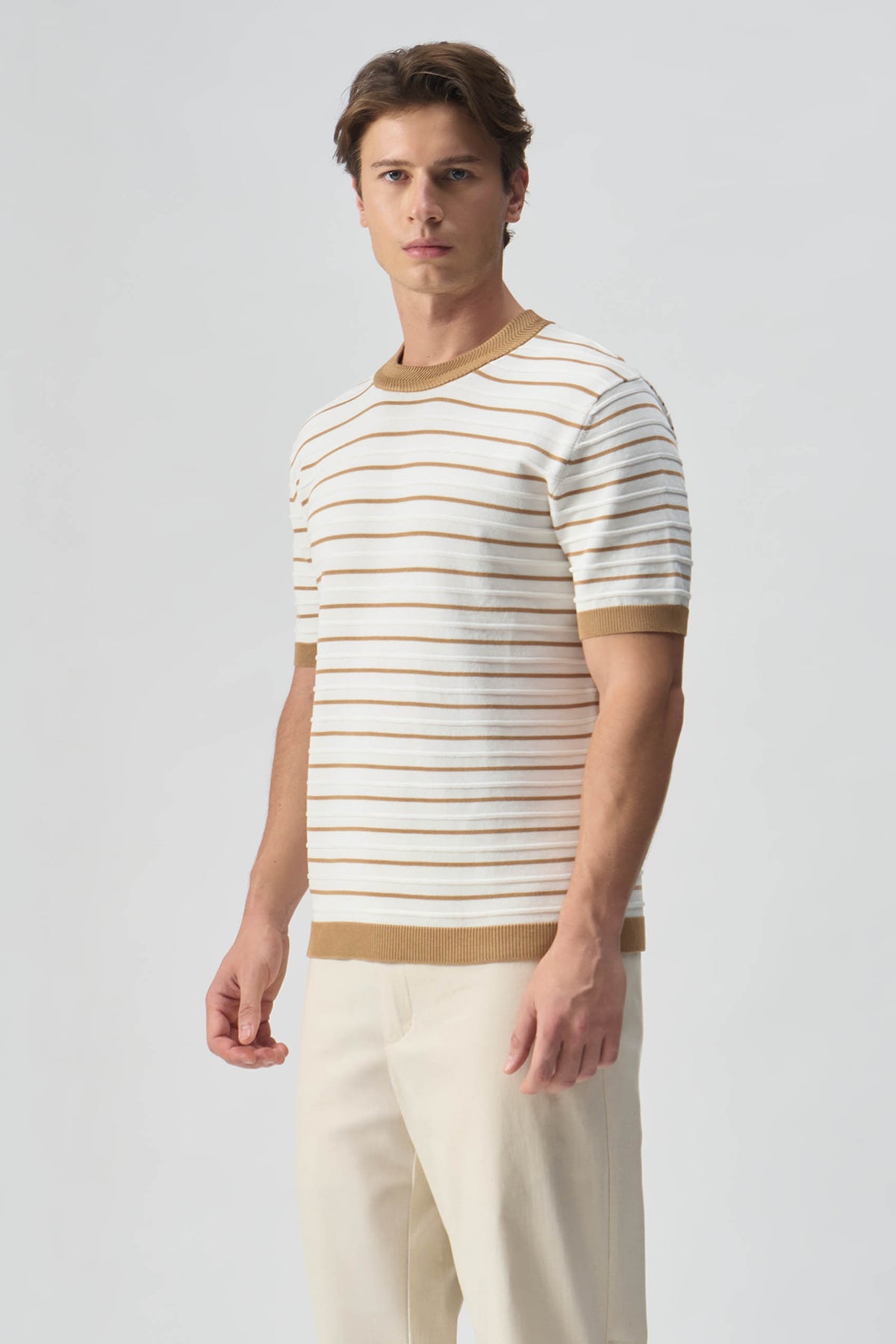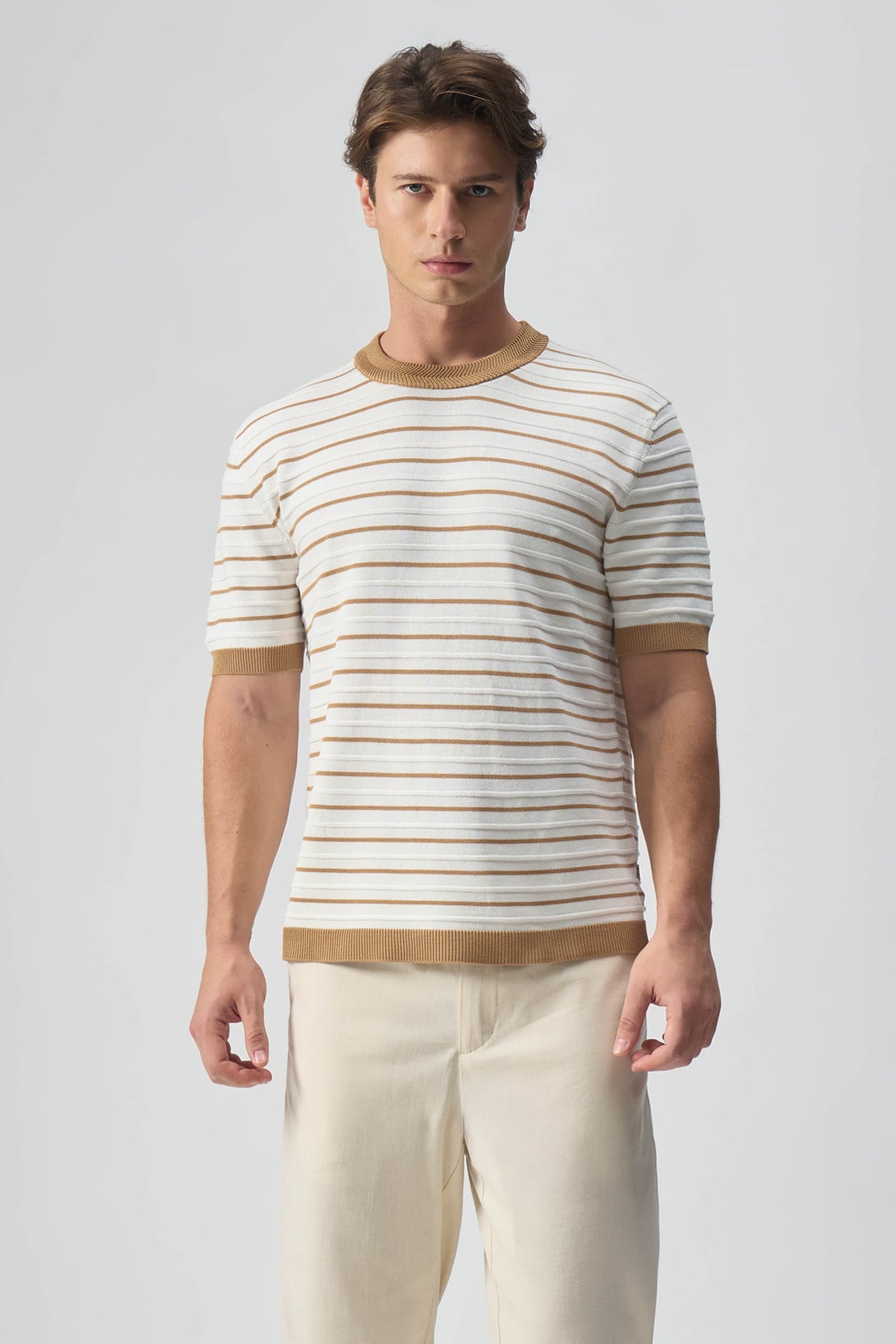 Striped Textured Flat Knit T-Shirt