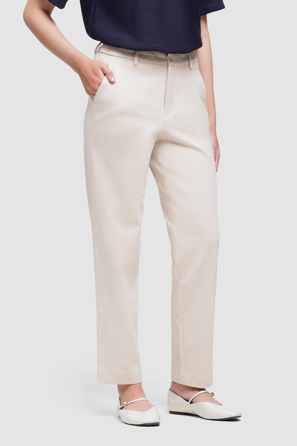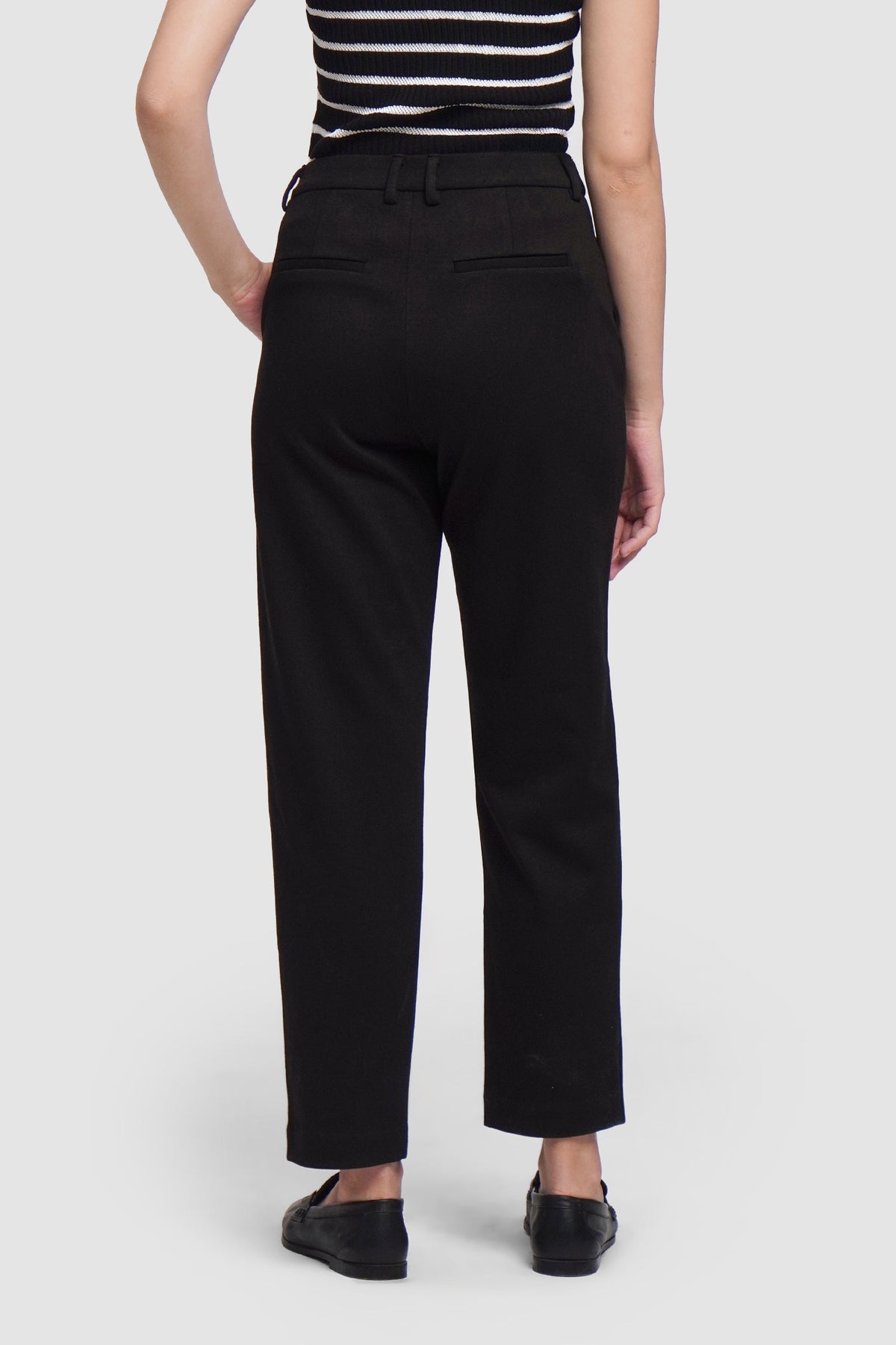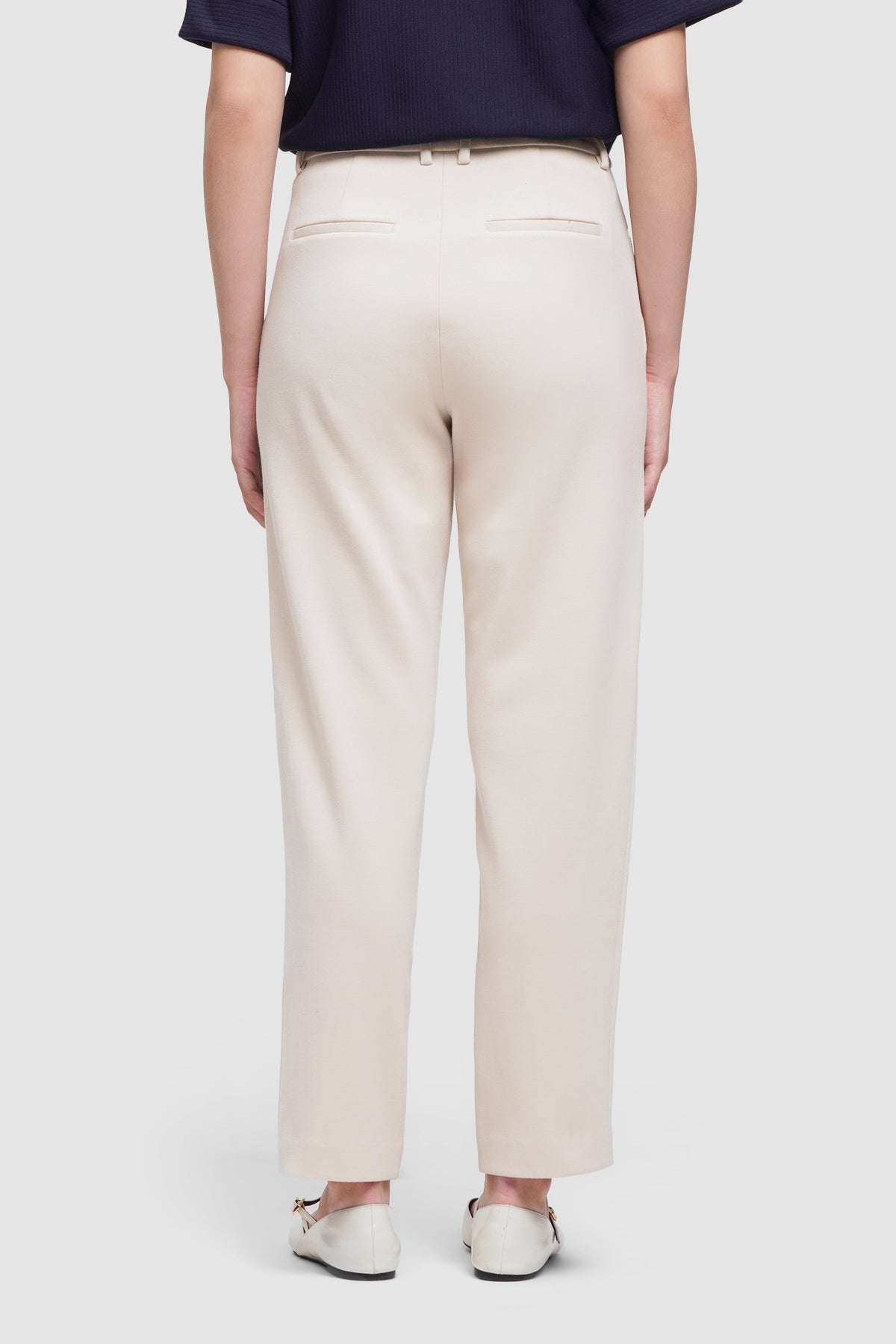 - Design Details: Diagonal Side Pockets, 2 Pcs. Back Darts And Welt Pocket, Knit Fabric