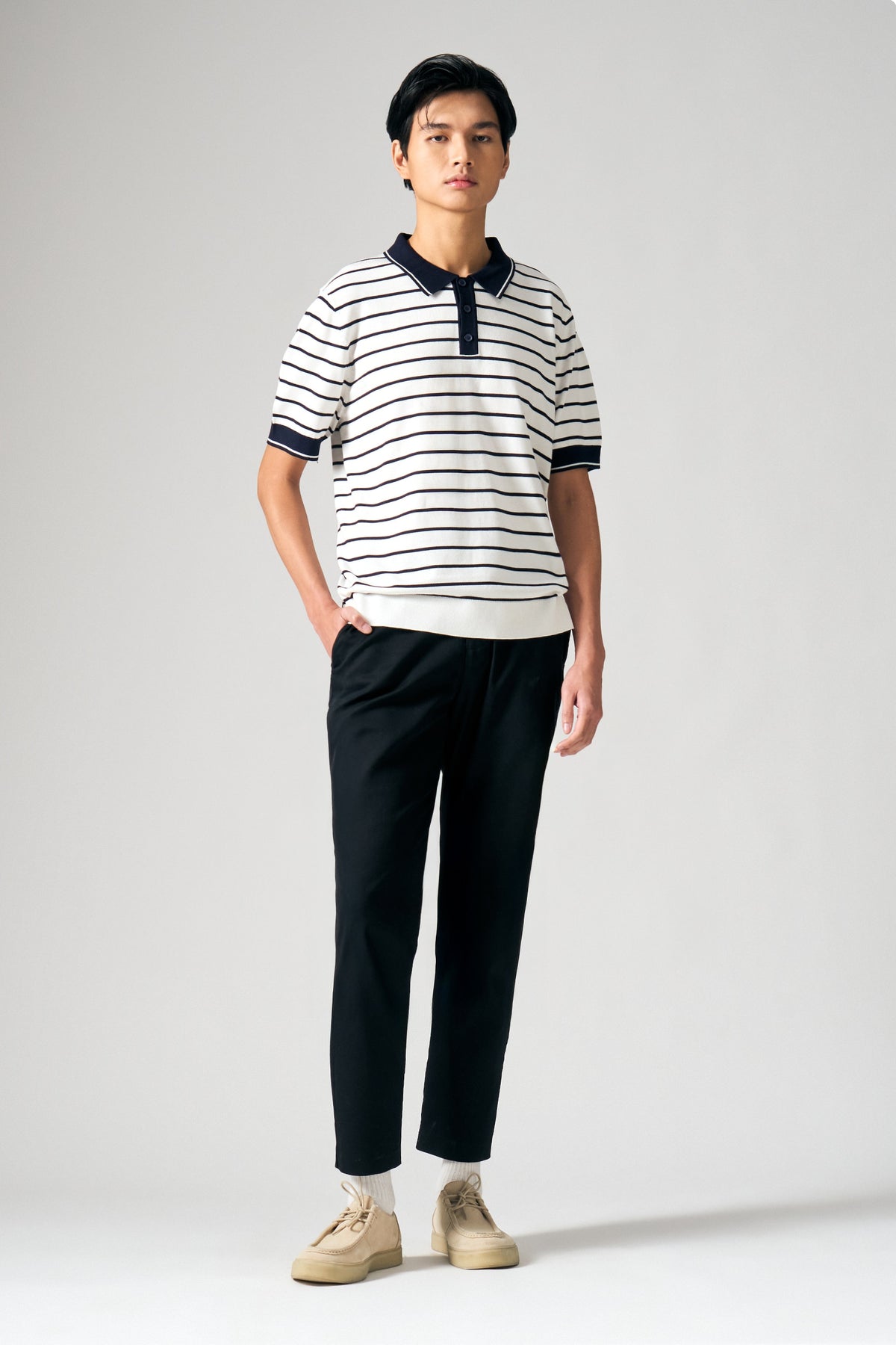 Flat Knit Stripe Polo