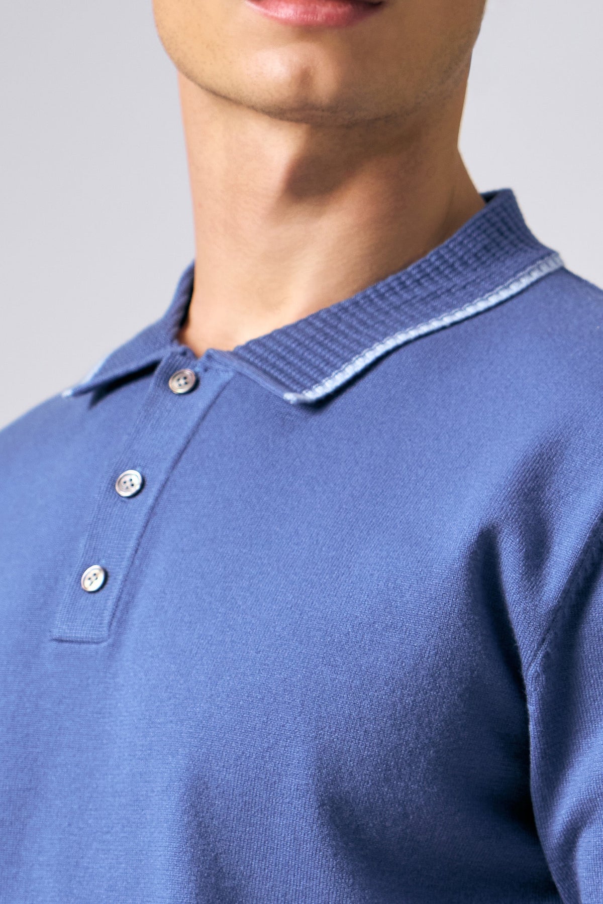 • Design Details: Contrast Color Tipping on Collar, Three-button Placket