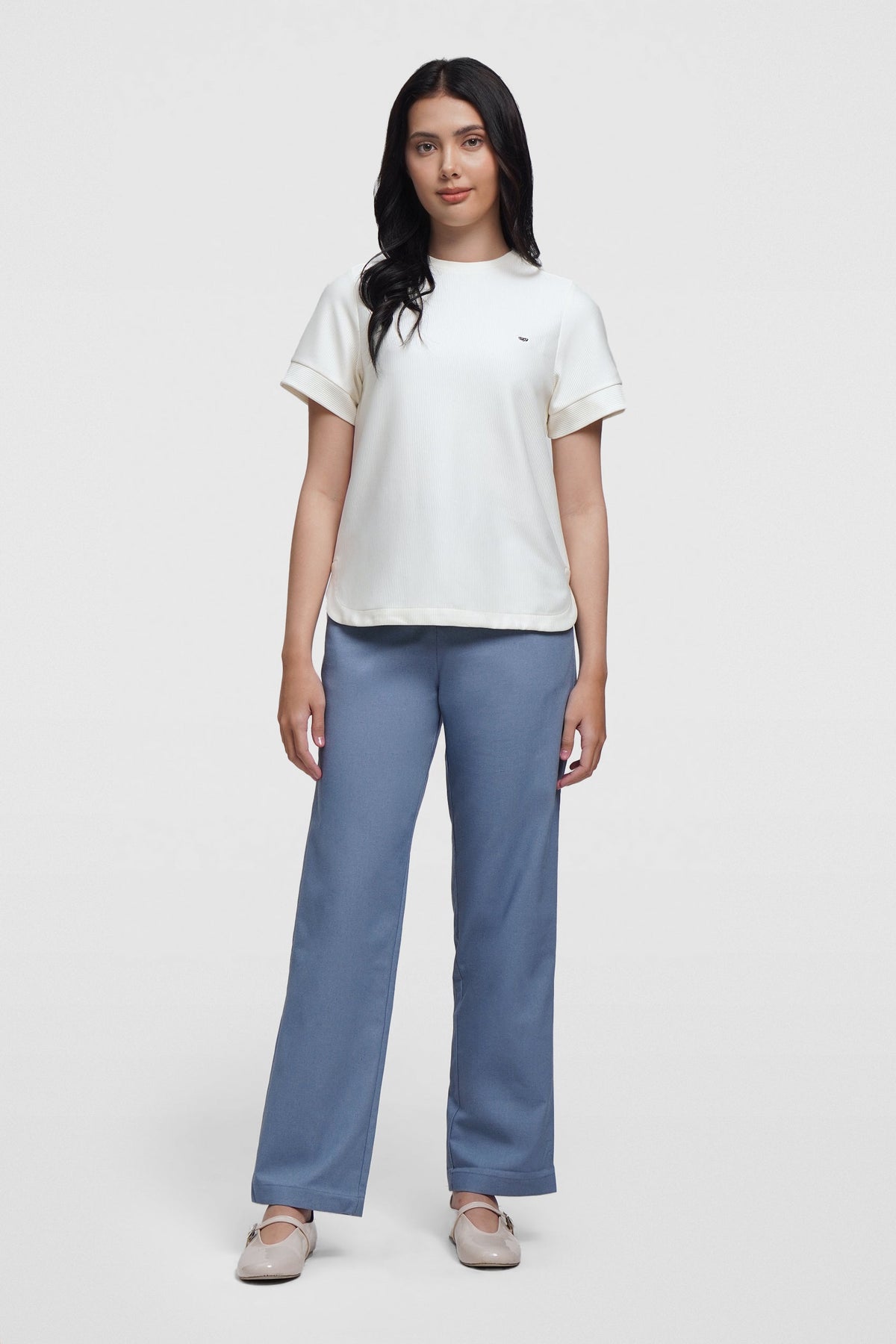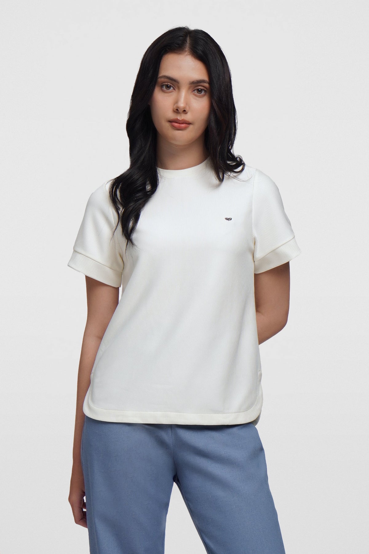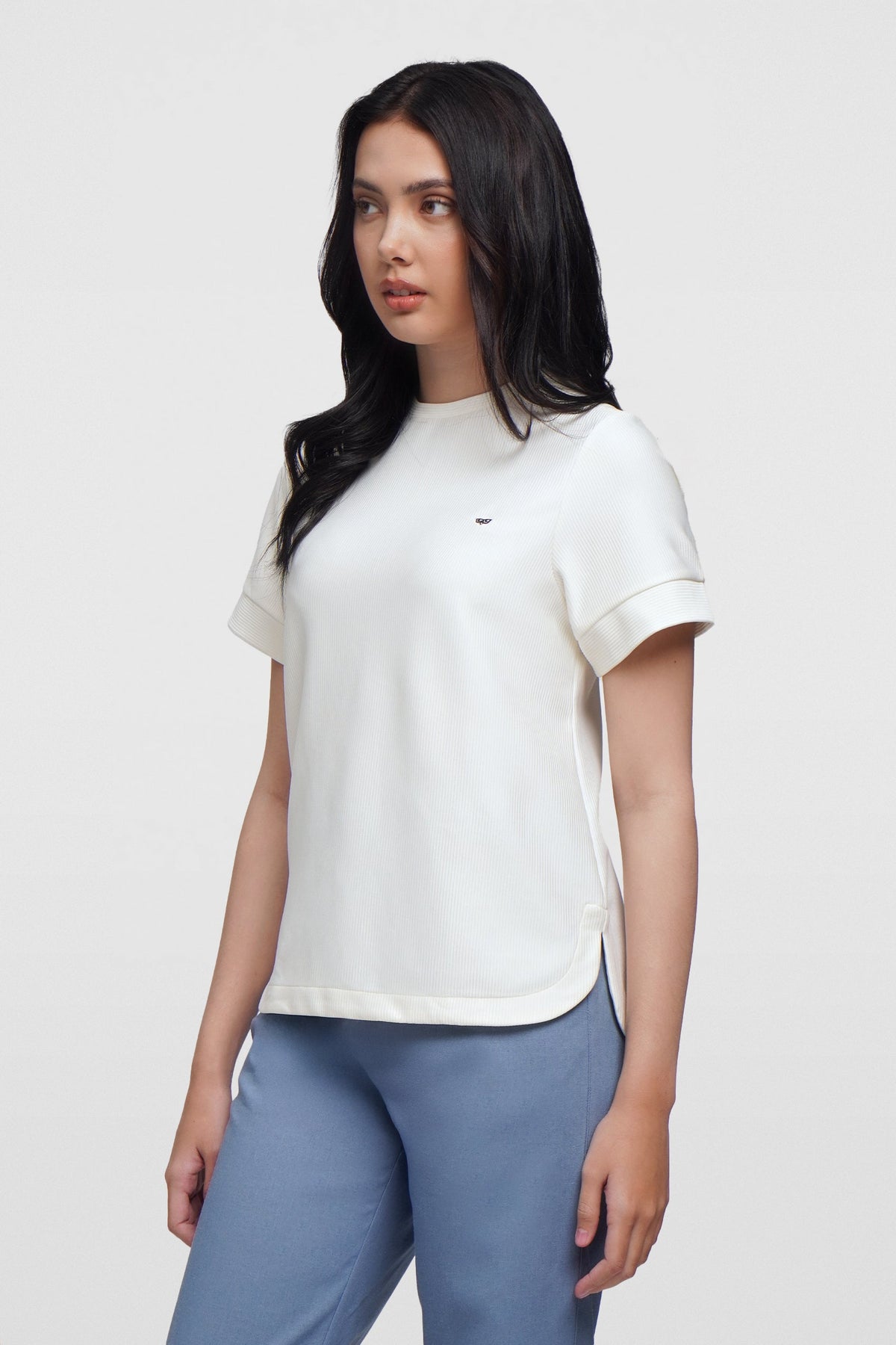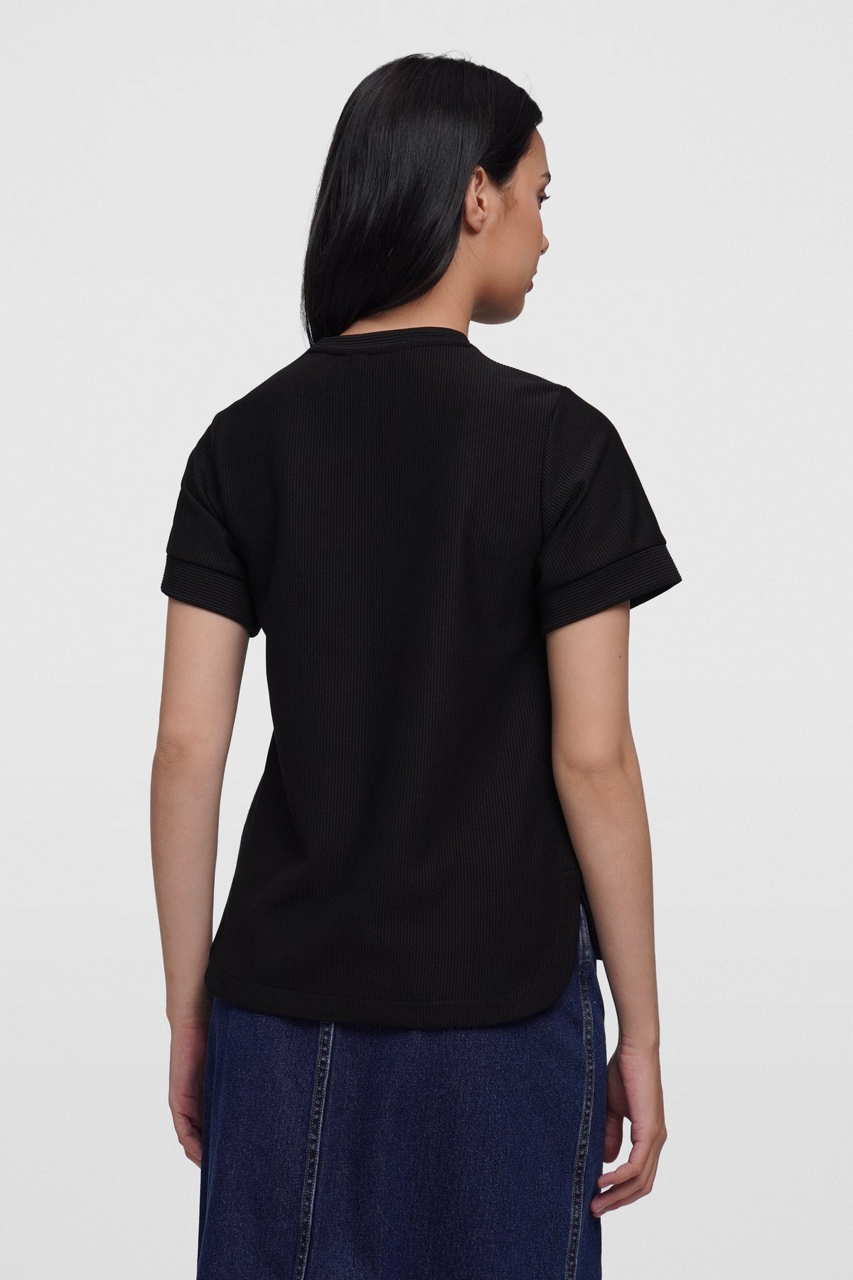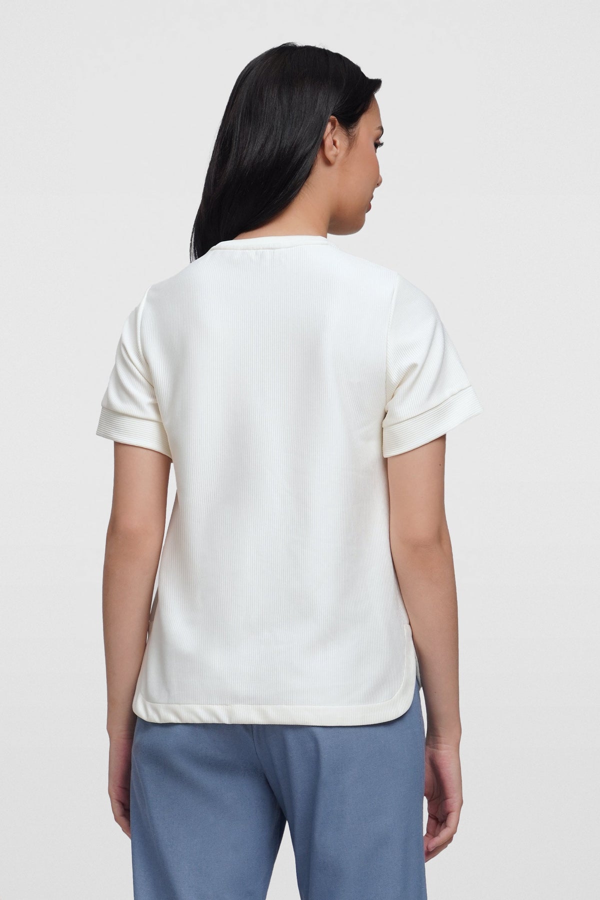 - Design Details: Curved Hem, Self Fabric Sleeve Cuff, Self Fabric Neck Band