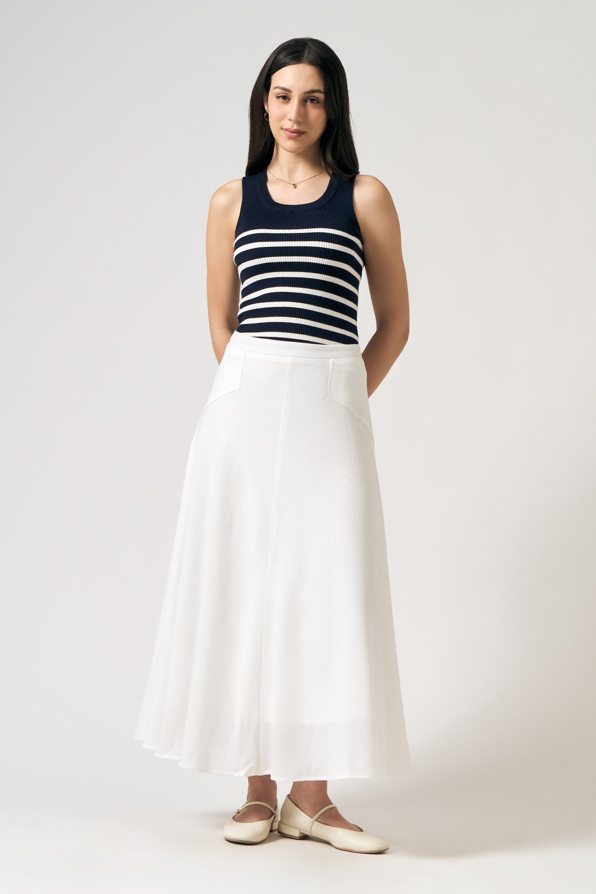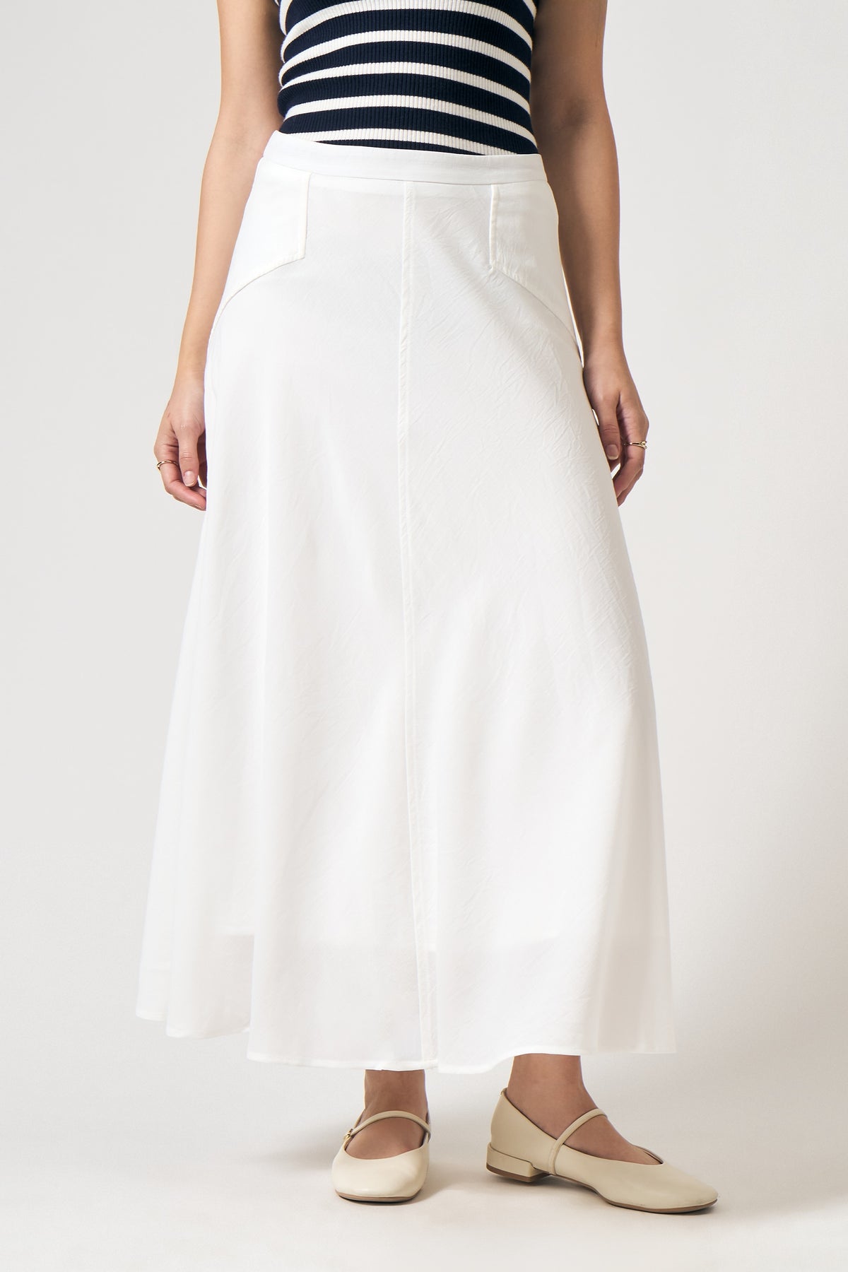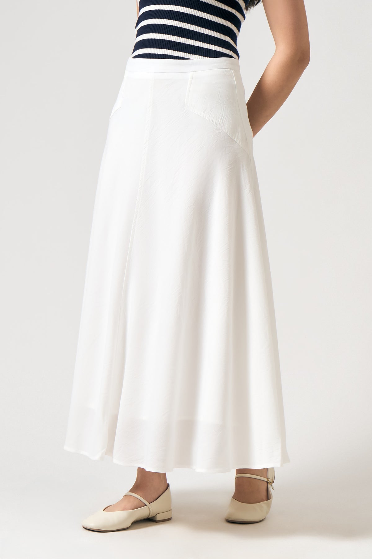 - Design Details: A - Line Skirt, Plain Weave Fabric, Fully Lined Skirt, Cut And Sew Details, Back Invisible Zipper