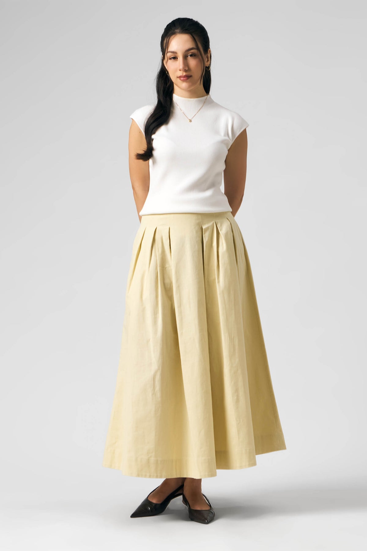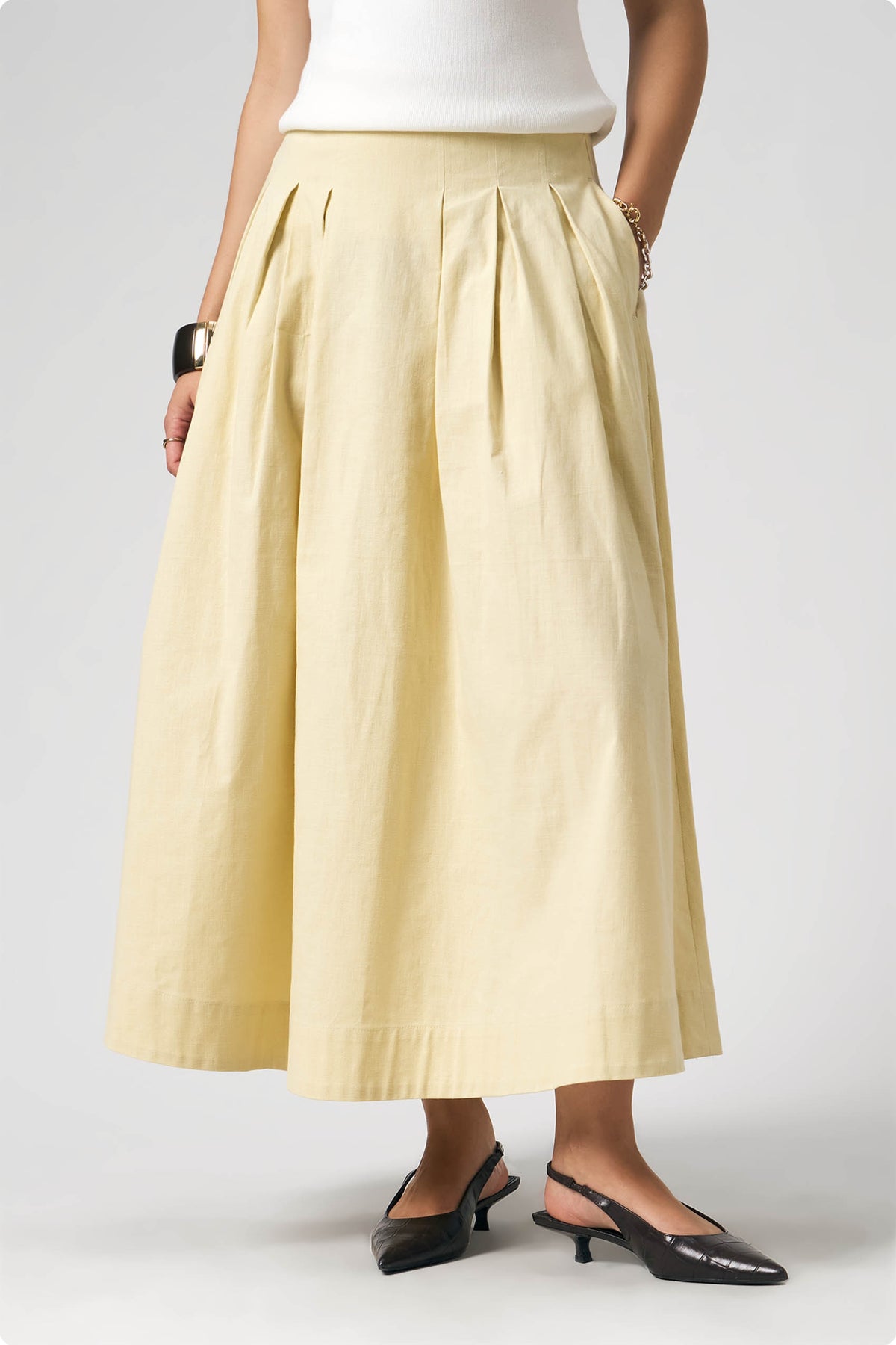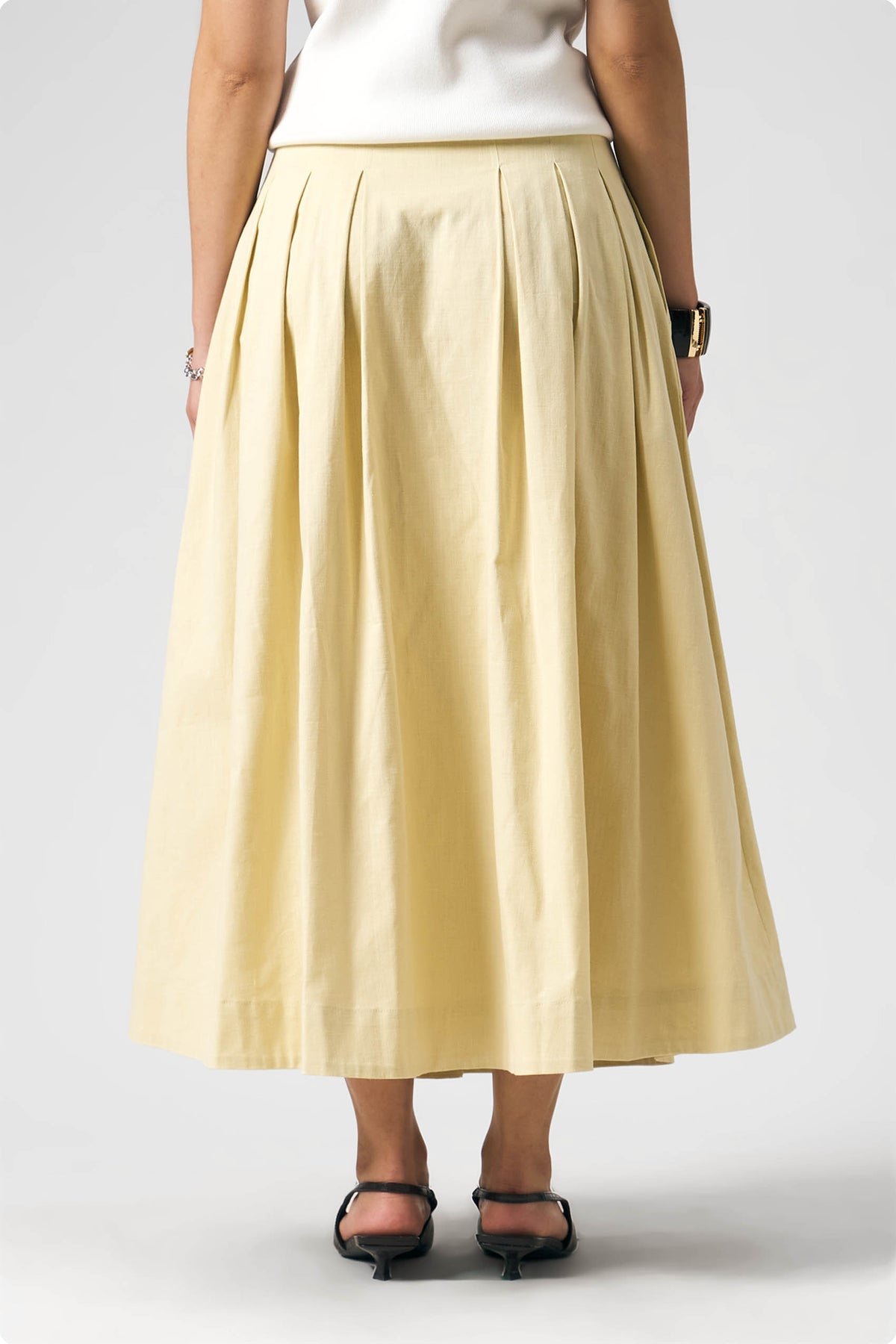 - Design Details: A-Line Skirt, Inverted Box Pleat, Seamless Waistband, Side Slit Pockets, Plain Weave Fabric
