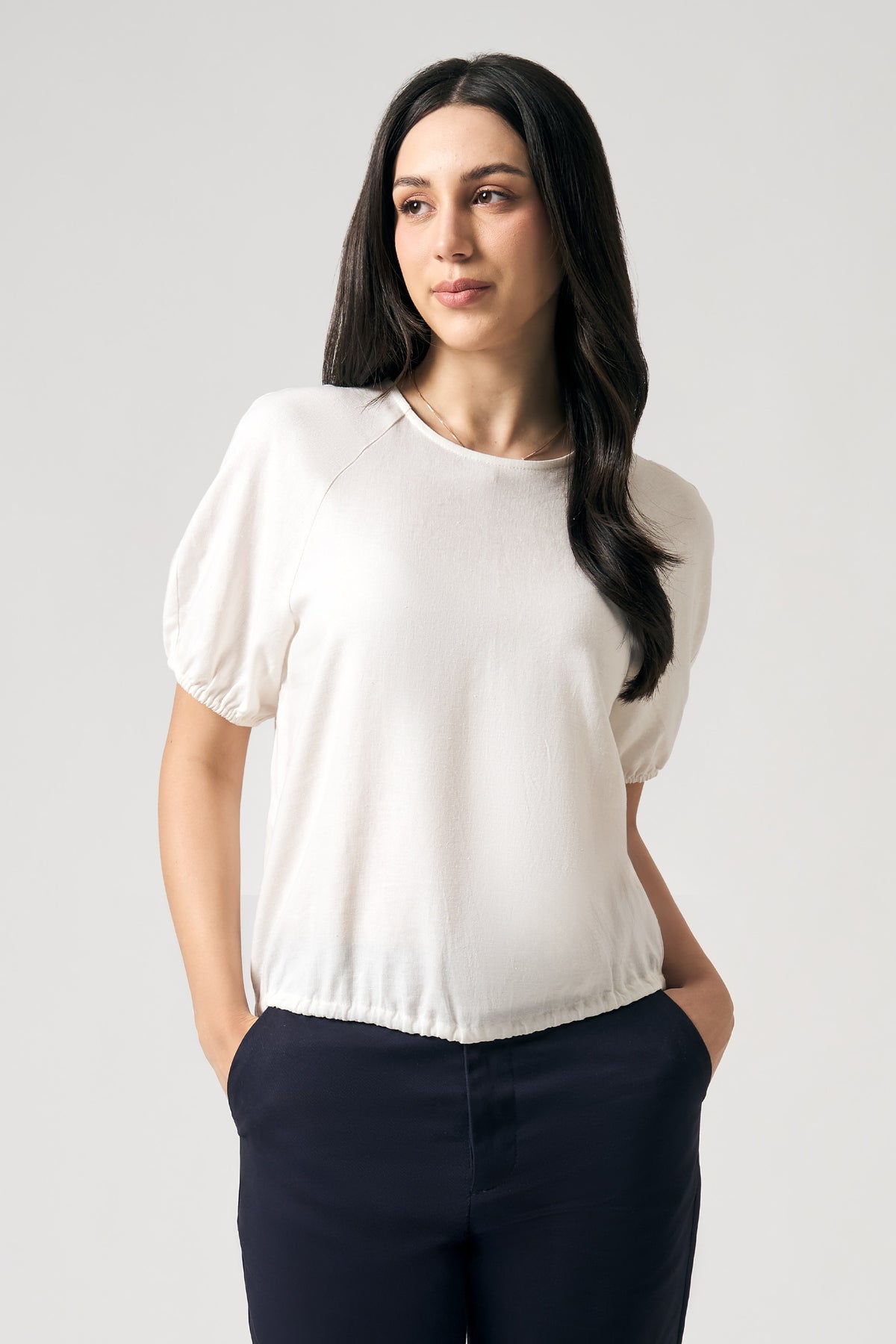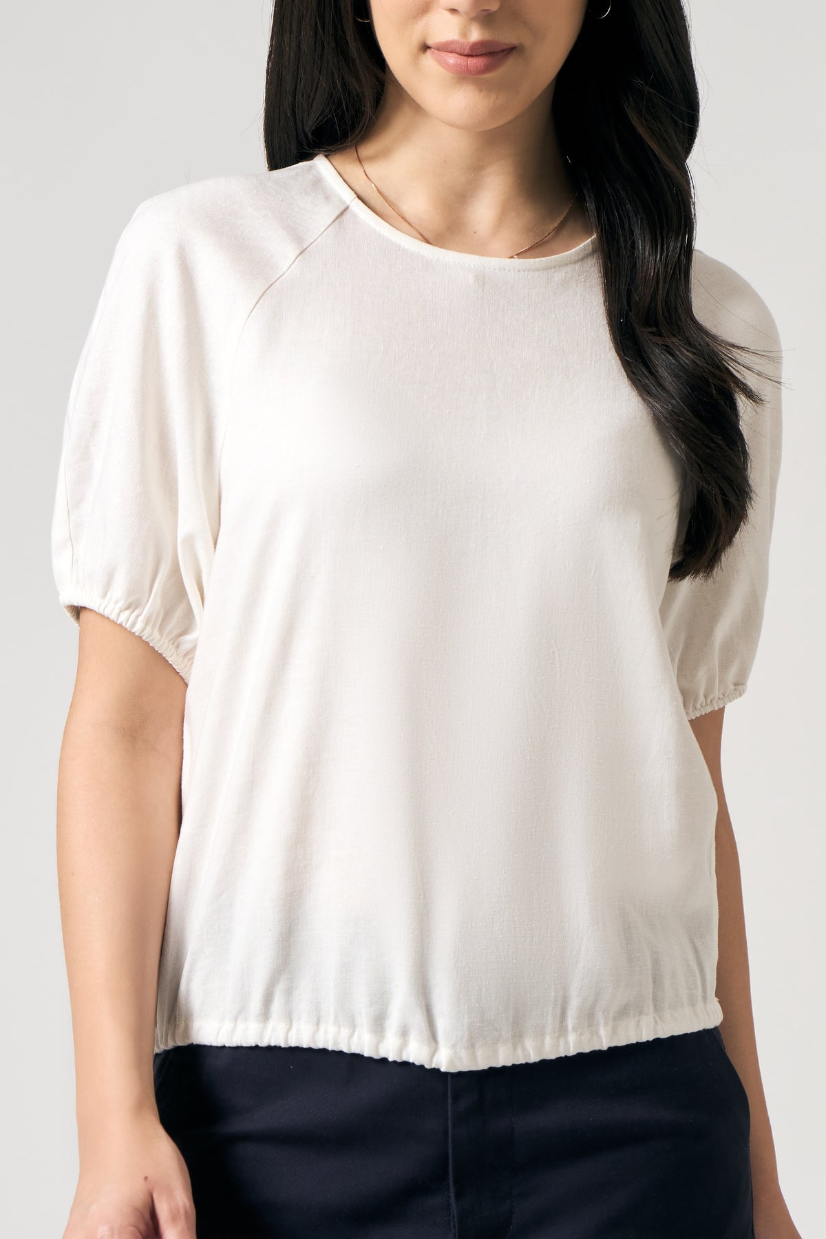 - Design Details: Plain weave fabric, Raglan sleeves, Gartered hem and sleeves, Back slit opening