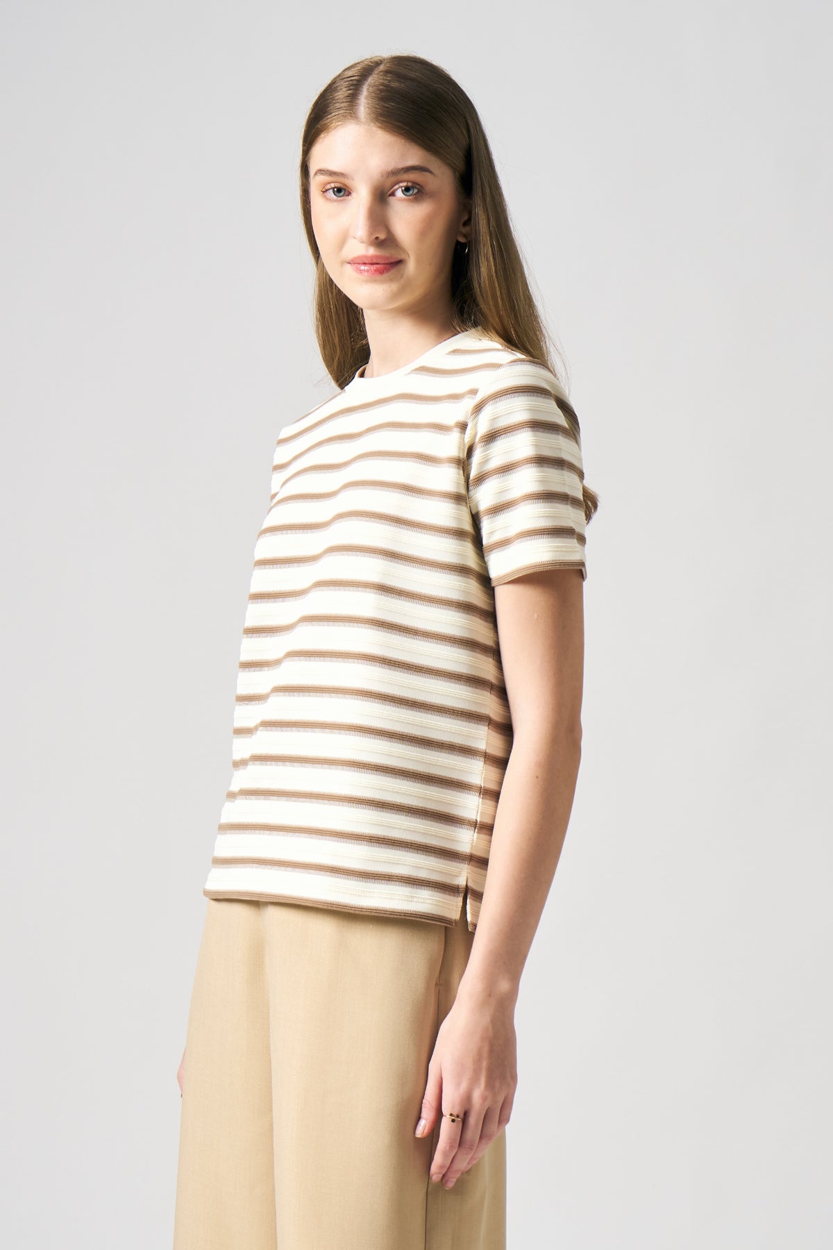 - Design Details: Textured Knit Fabric, Side Slit